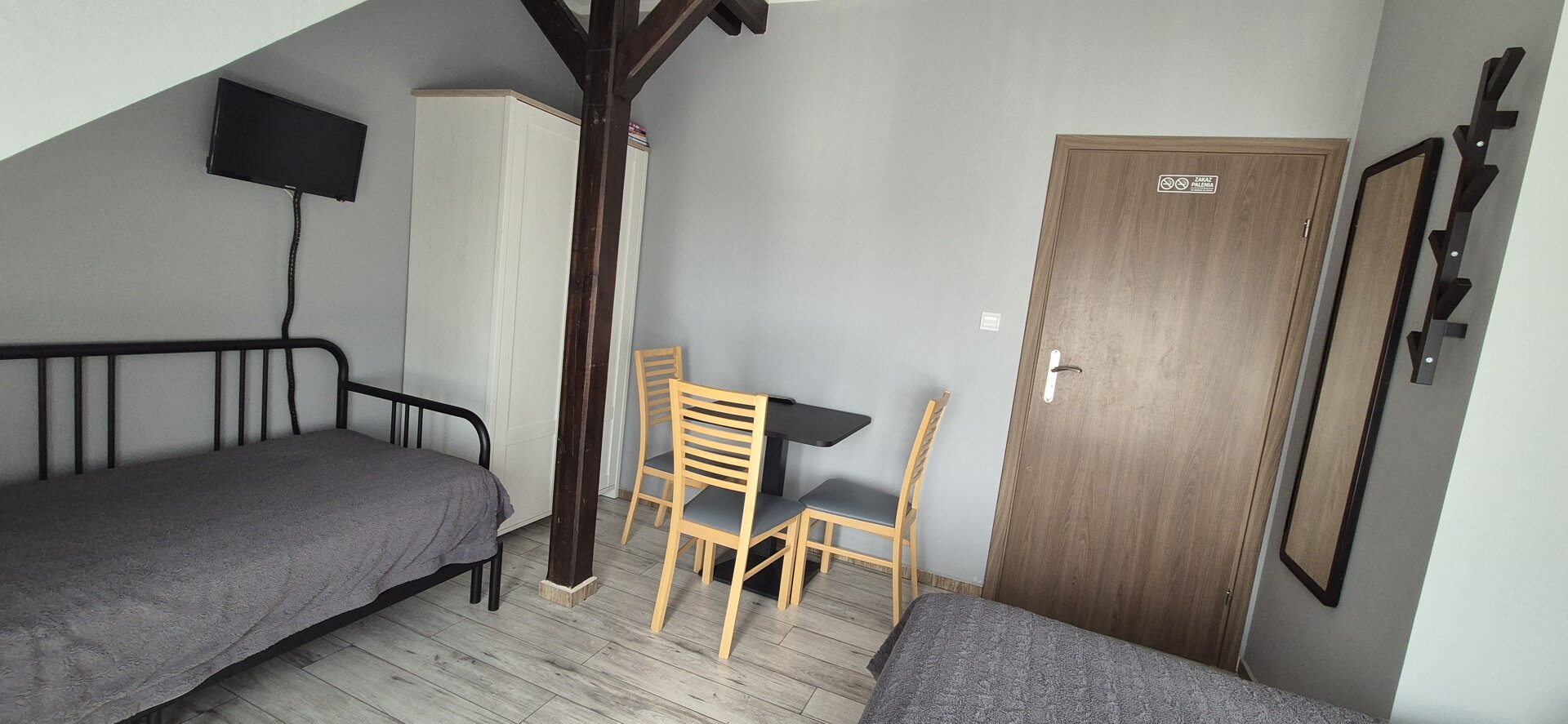 Pokój trzyosobowy z trzema łóżkami pojedynczymi, z możliwością połączenia dwóch z nich w jedno duże.